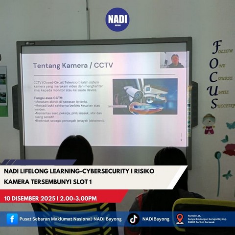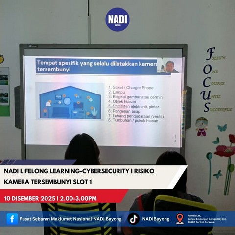 5 Disember 2025 | Aktiviti TerkiniPada 04 dan 10 Disember 2025, telah berlangsung program NADI Lifelong Learning Cybersecurity yang bertajuk Risiko Kamera Tersembunyi Slot 1 dan 2.