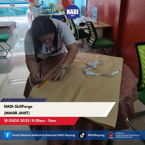 19 Ogos 2025 | Aktiviti TerkiniPada 11 dan 18 Ogos 2025, NADI Bayong telah mengadakan program NADI SkillForge Mahir Jahit. Program ini telah dihadari oleh 2 orang peserta. Program ini berlangsung pada pukul 9.30 sehingga 11.00 pagi dan bertujuan untuk mengajar para peserta akan cara-cara membuat jahitan yang betul.