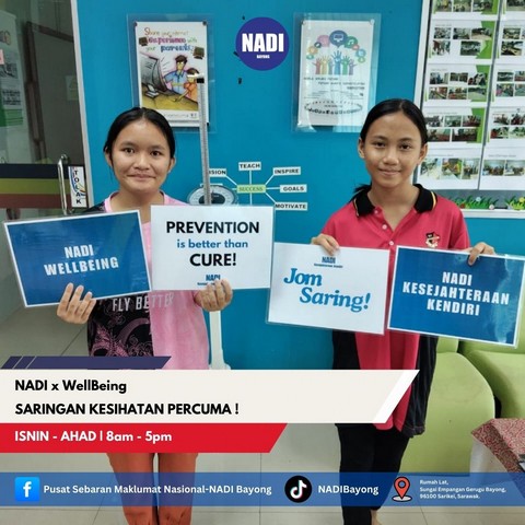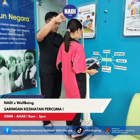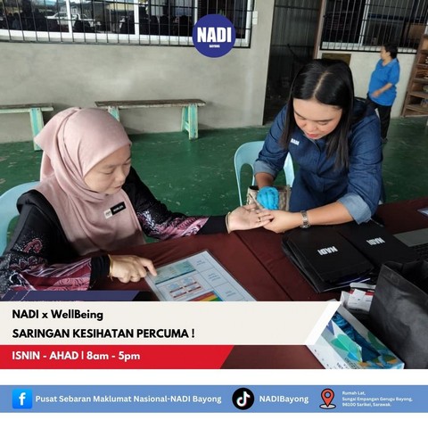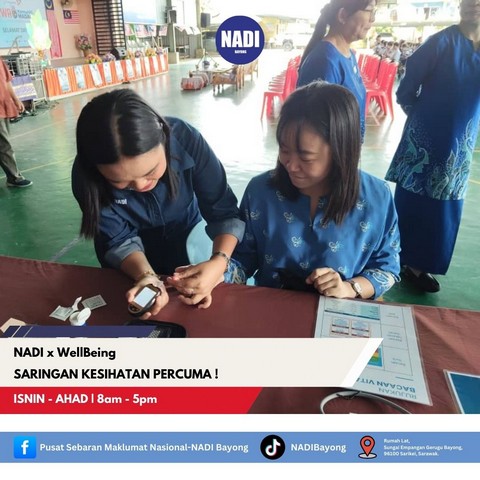 22 Ogos 2025 | Aktiviti TerkiniPada 21 Ogos 2025, NADI Bayong telah mengadakan program NADI x Wellbeing Saringan Kesihatan. Program ini berlangsung di Sekolah Jenis Kebangsaan Cina Wah Man bersempena dengan Program Kempen Internet Selamat disamping dilakukan di NADI Bayong. Tujuan utama saringan kesihatan ini ialah bagi mengenalpasti tahap kesihatan peserta terutamanya dari segi bacaan tekanan darah dan gula dalam darah.
