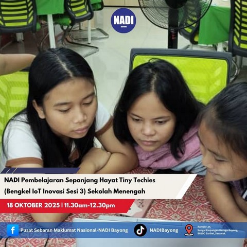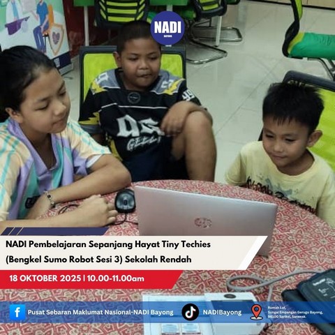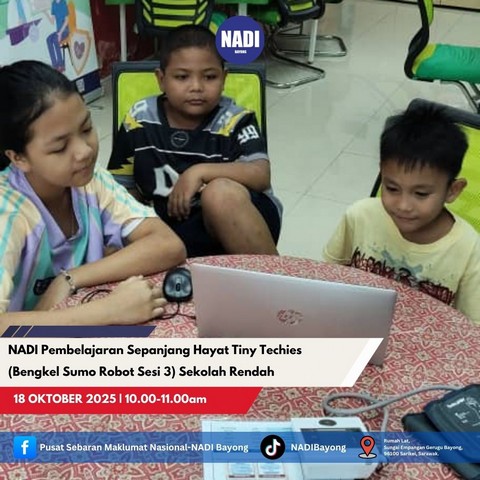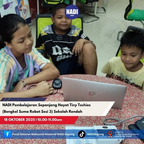 19 Oktober 2025 | Aktiviti TerkiniPada 18 Oktober 2025, NADI Bayong telah mengadakan program dibawah pilar NADI LIFELONG LEARNING iaitu Tiny Techies iaitu Bengkel Sumo Robot sesi 3 untuk pelajar sekolah rendah dan Bengkel IoT Inovasi sesi 3 untuk pelajar sekolah menengah.